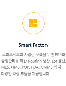 특히, 제조기업에서 필요한 대부분의 모듈을 Component 형태로 관리하고 제공하여, 각 기능의 변경 및 수정이 용이하고, 한번 사용한 기능의 재활용성이 뛰어날 뿐만 아니라, 초기개발 시 효율적인 Customizing이 가능합니다.