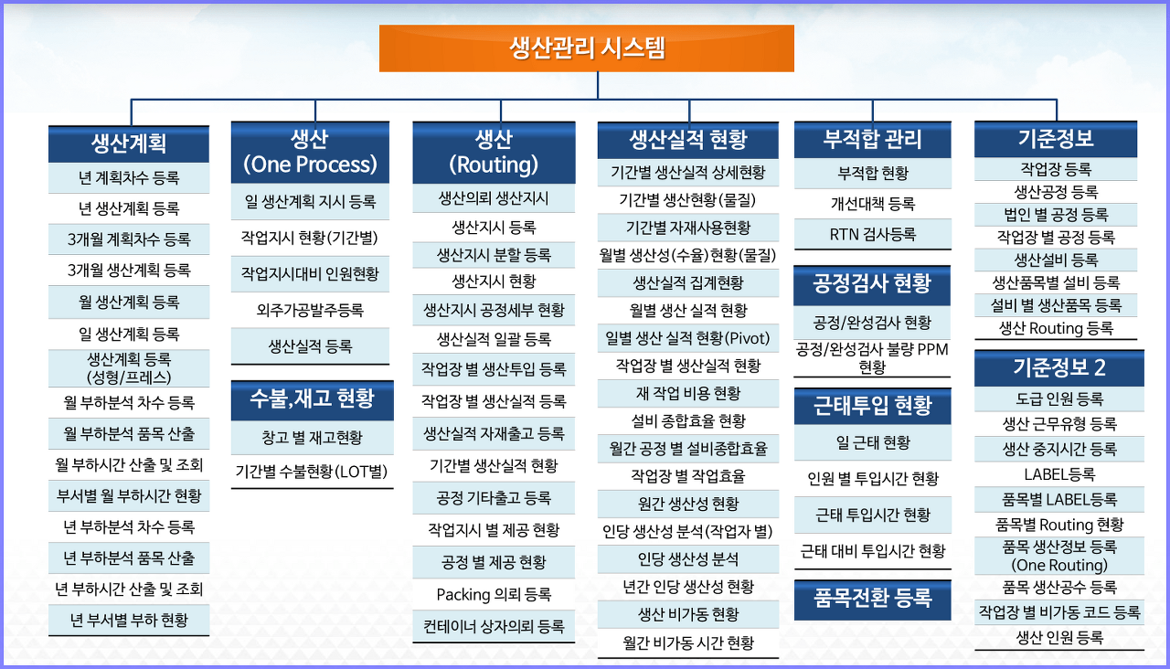 ■ 생산.공정관리 시스템 주요 MENU